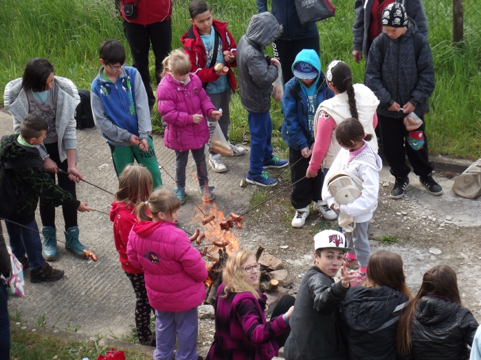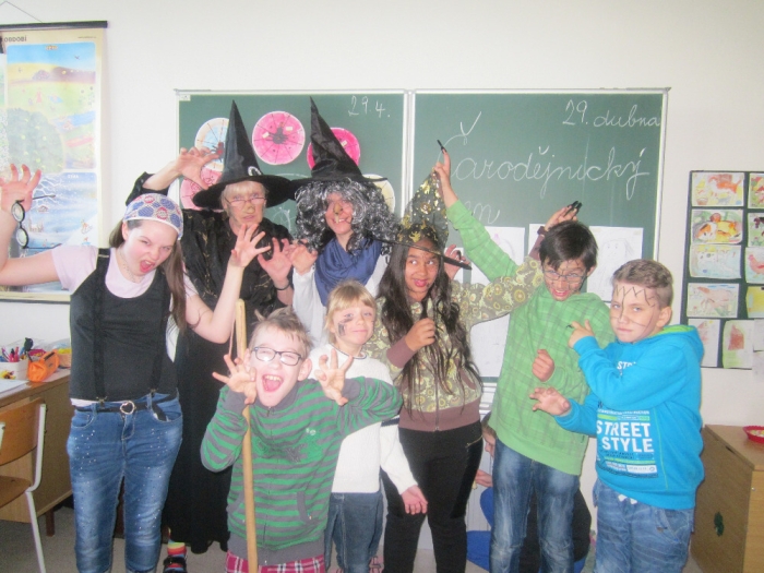 Ve čtvrtek 28. dubna všichni žáci místo do lavic vyrazili podél potoka Čepel do Podlusk a okolo rybníka zpět ke škole. Nebyla to jen obyčejná vycházka, ale na žáky čekala spousta zajímavých úkolů. Museli prokázat znalosti za zeměpisu, první pomoci při zlomenině, pojmenovat rostliny a zvířata, určit dopravní značky nebo změřit délku kroku. U připraveného ohniště sice nepálili čarodějnici, ale zazpívali si společně za doprovodu kytary trempské písně a opekli buřty.