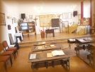 Výstava v knihovně - staré pomůcky, dokumentace, vybavení žáků i třídy.